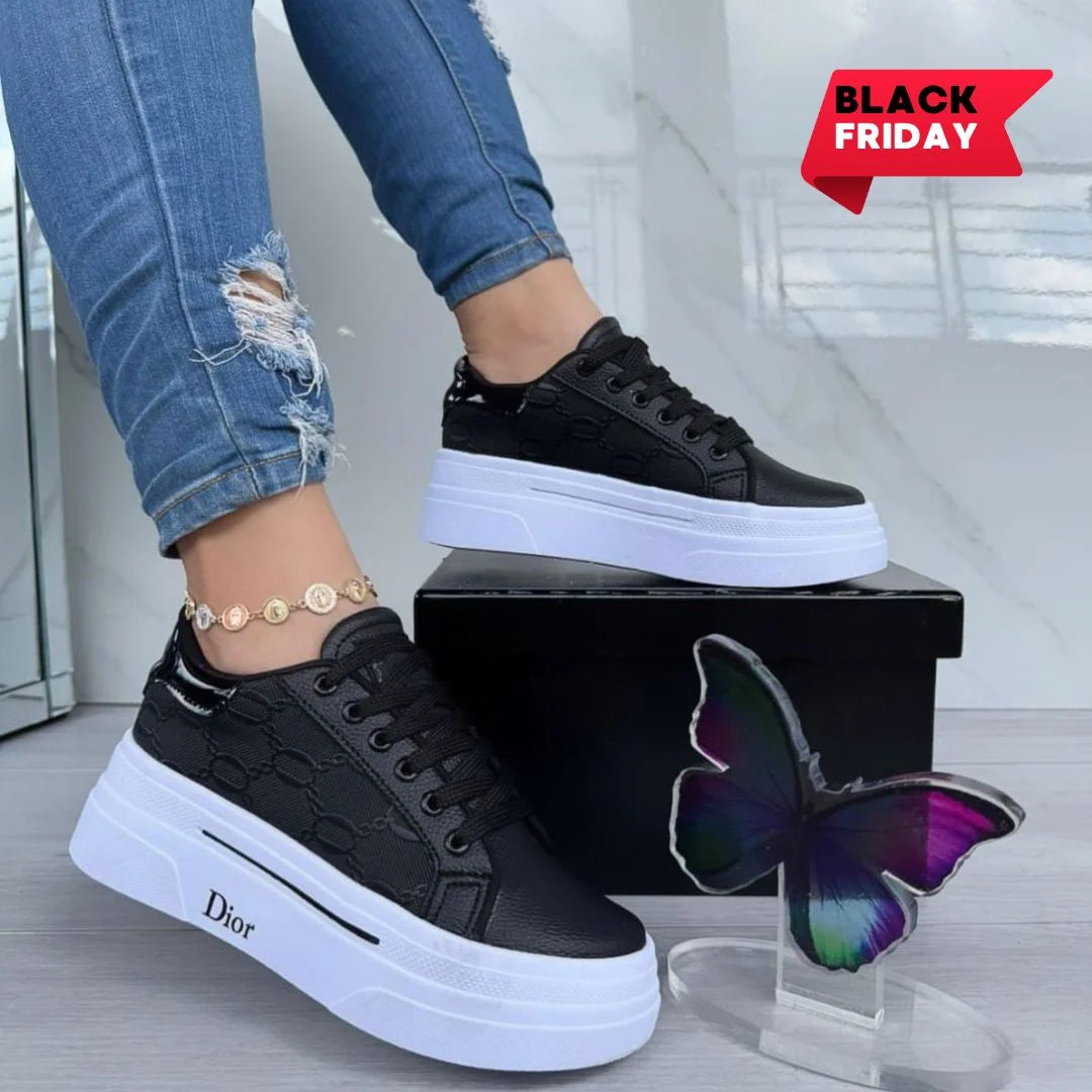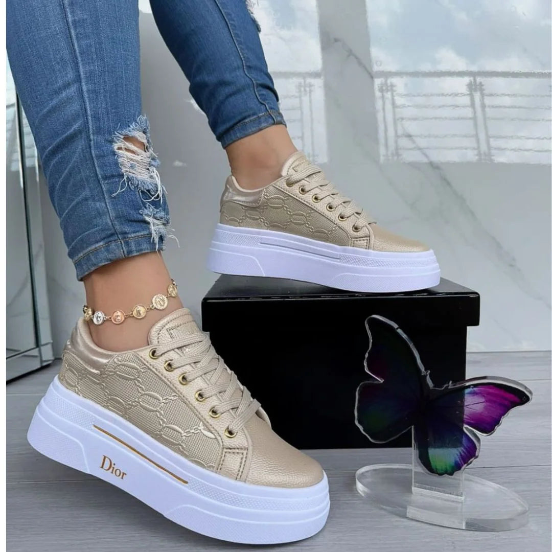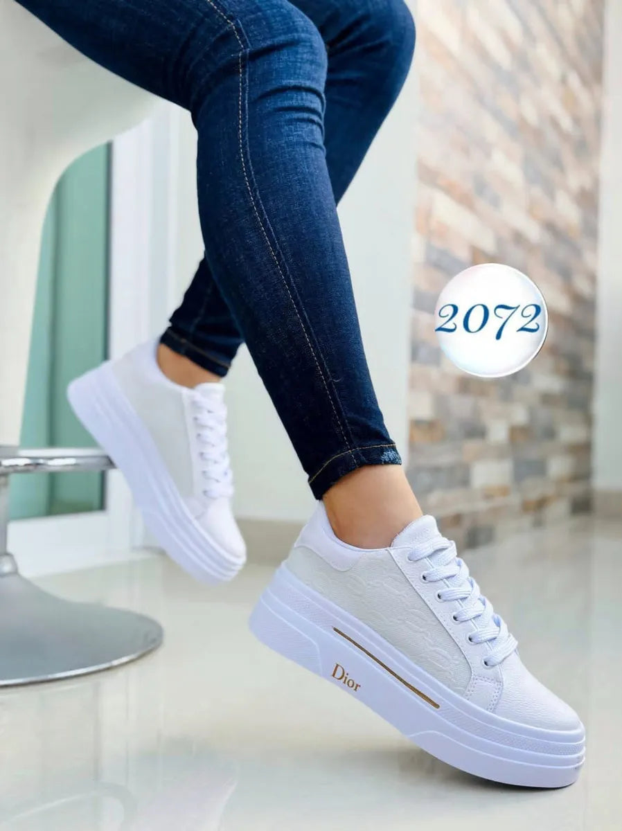 Con los Nuevo Tenis Suela Alta DIOR, obtienes estilo, altura y comodidad. Diseñados con cuero vegano, suela liviana y relieves de lujo, son el equilibrio perfecto entre lo chic y lo funcional.