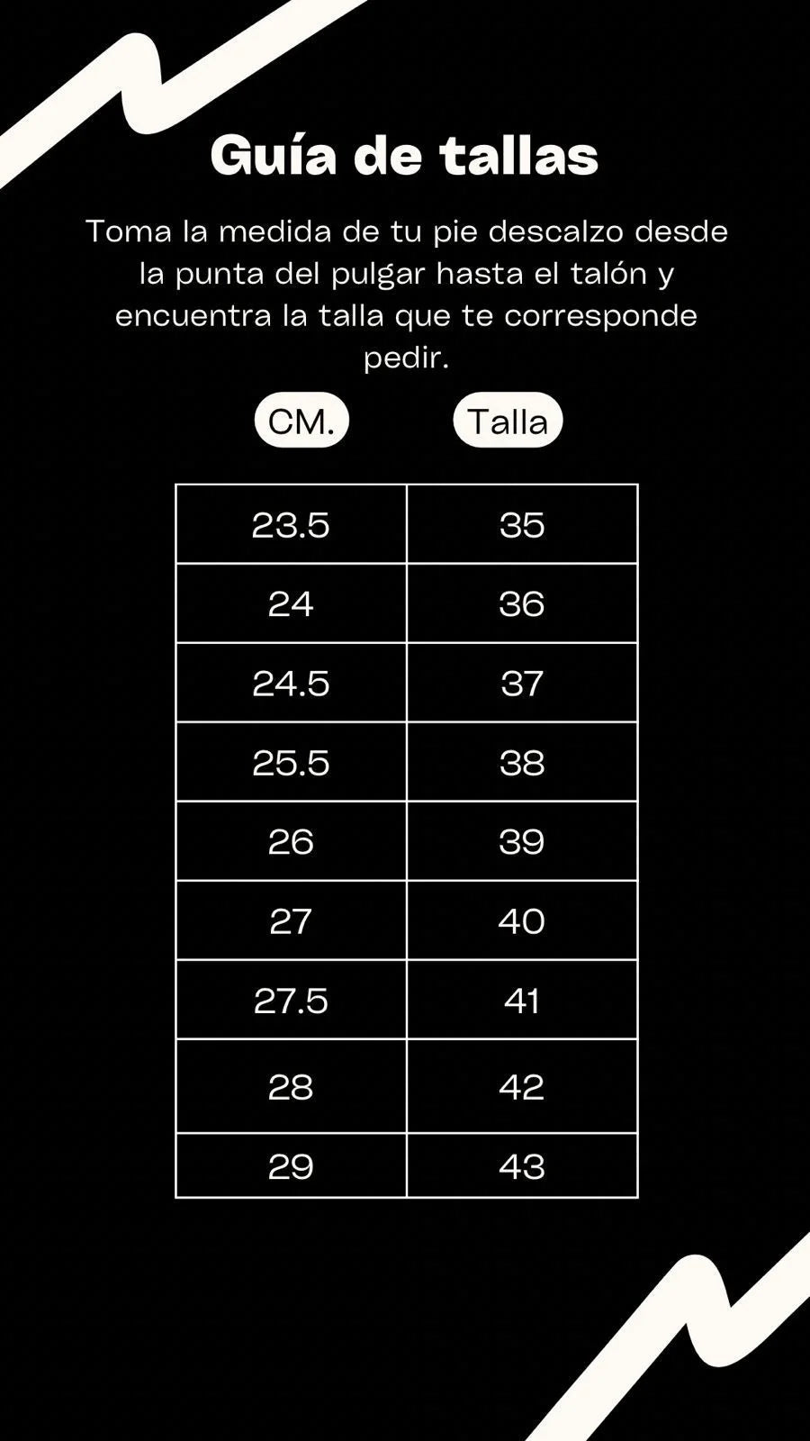 Tallas nacionales del 35 al 40. ¡Consulta nuestra guía de tallas si tienes dudas!